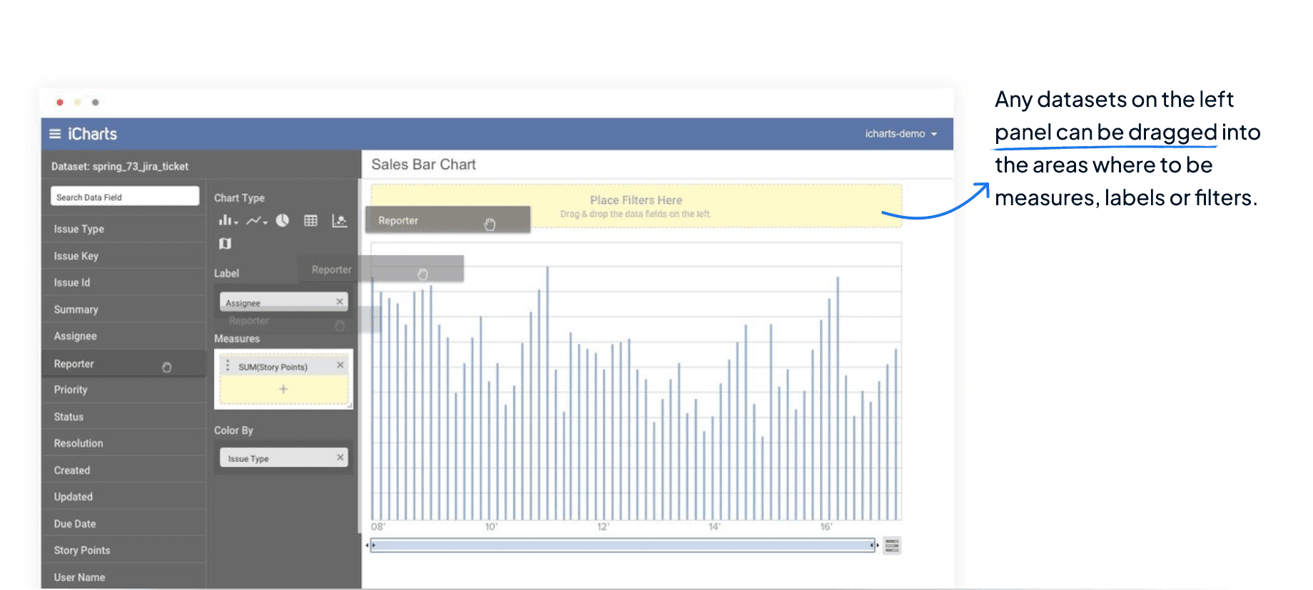 Initial Product Concept - Drag and Drop Datasets to Make Customized Charts & Dashboards