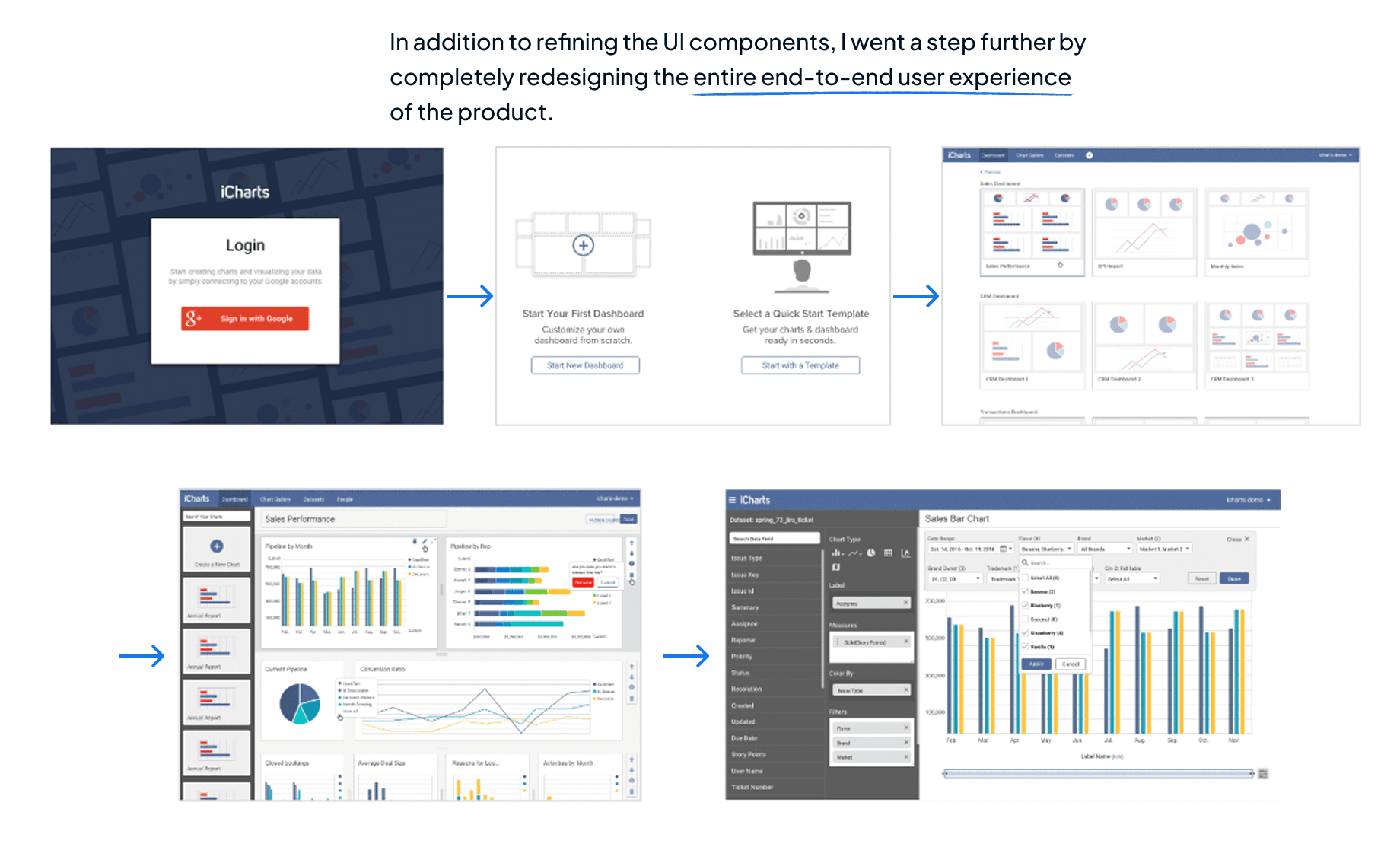 iCharts is a Business Intelligence tool for NetSuite and Google Cloud. My objective was to create a powerful tool that beautifully visualizes and analyzes user data. I contributed to the company's success by redesigning the end-to-end user flow, developing new product features, and enhancing product interaction and UI design.