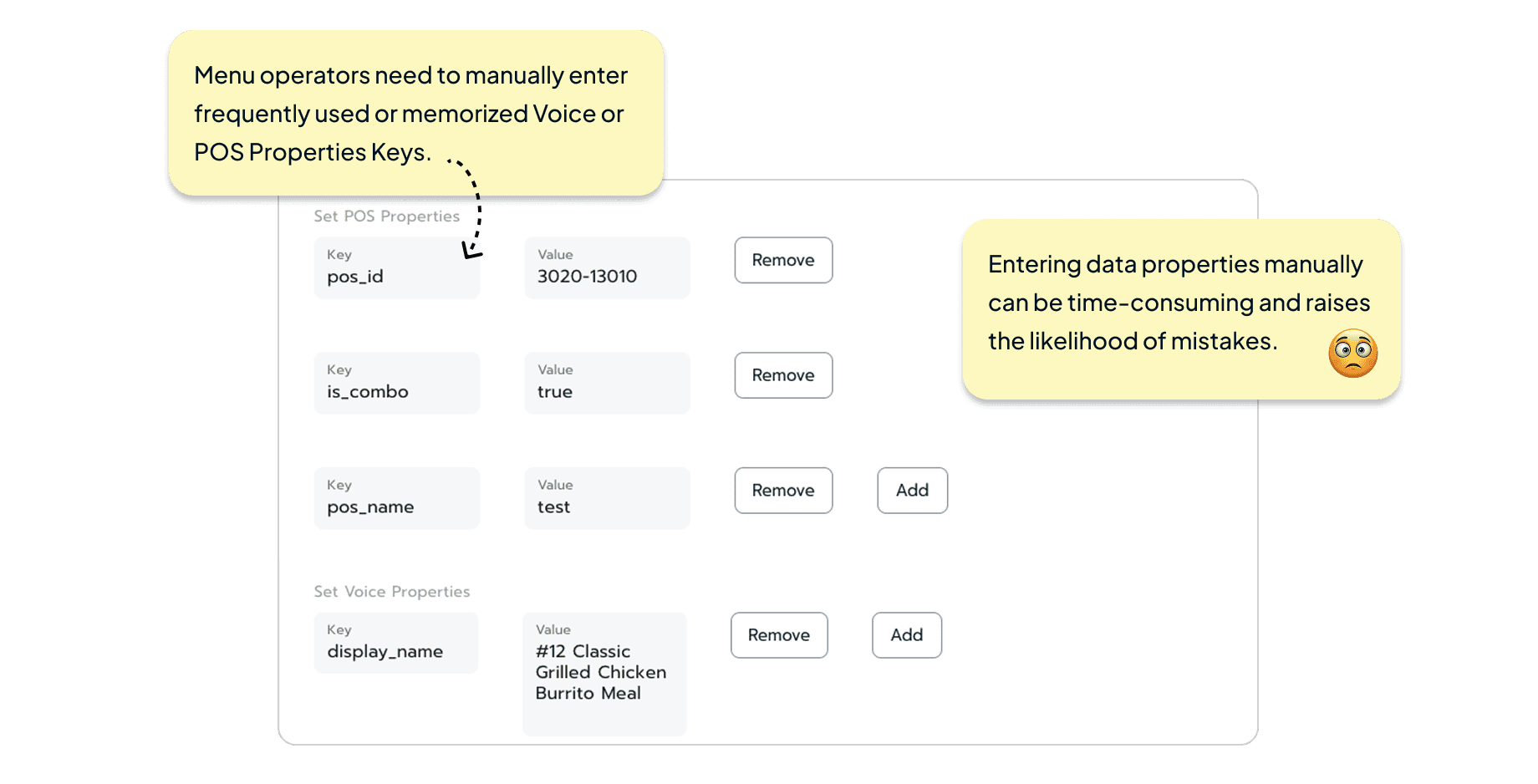 To understand Menu Operations team's daily workflows and pain points, I conducted comprehensive interviews with the team members. Through multiple rounds of journey mapping, data structure visualization and annotations, I identified three critical inefficiencies that were costing the team hours each day.