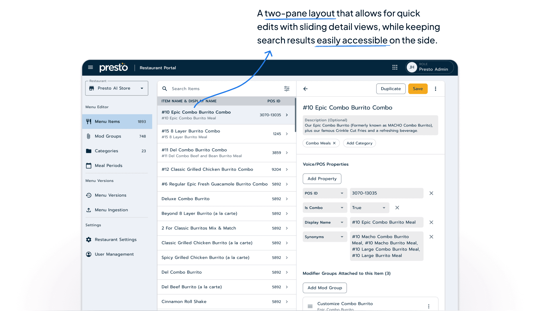 Designing a portal to reduce menu editing time and eliminate the need for extensive training on unintuitive workflows. This directly supported Presto's growth from managing single-digit stores to hundreds of locations.