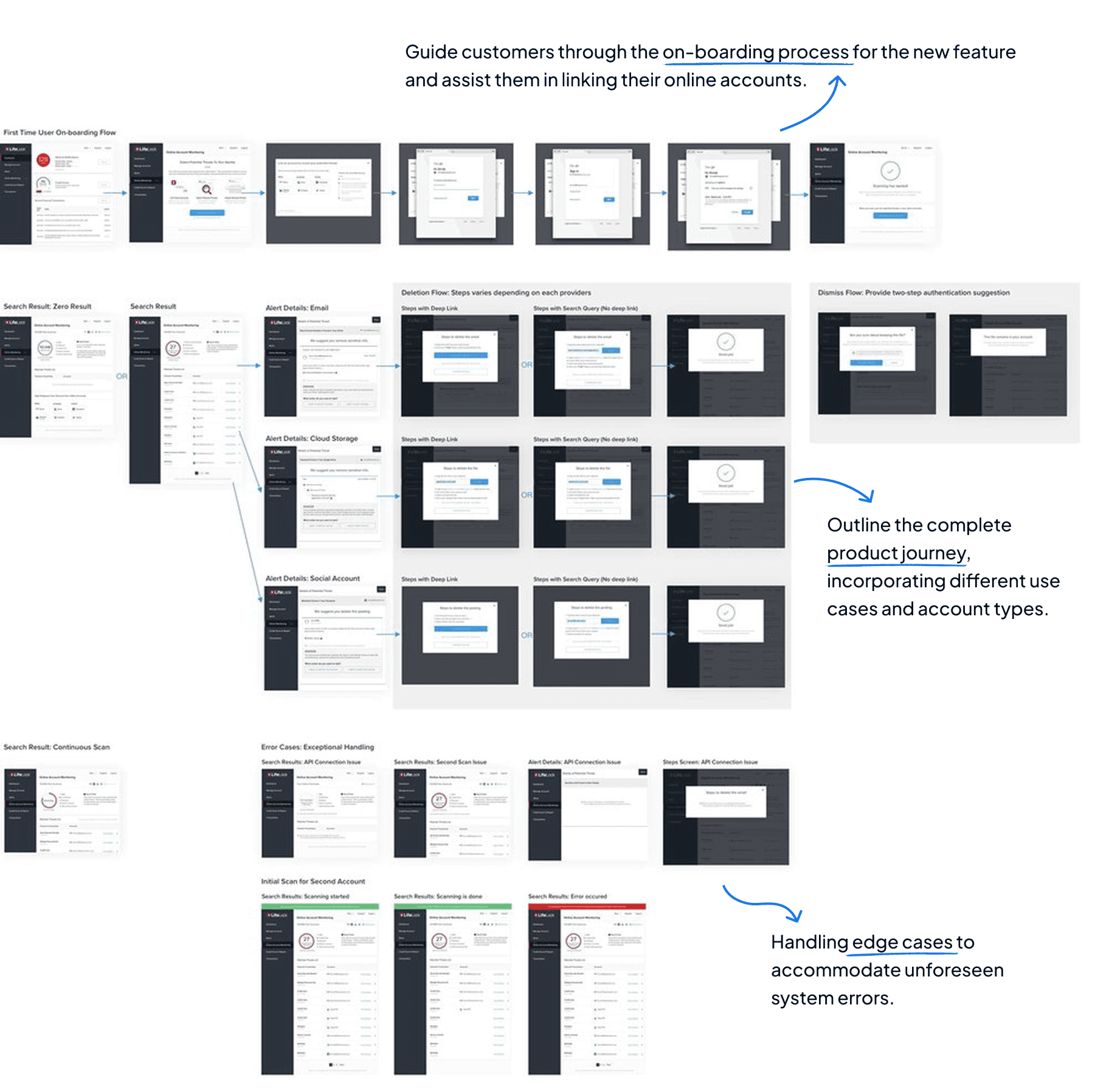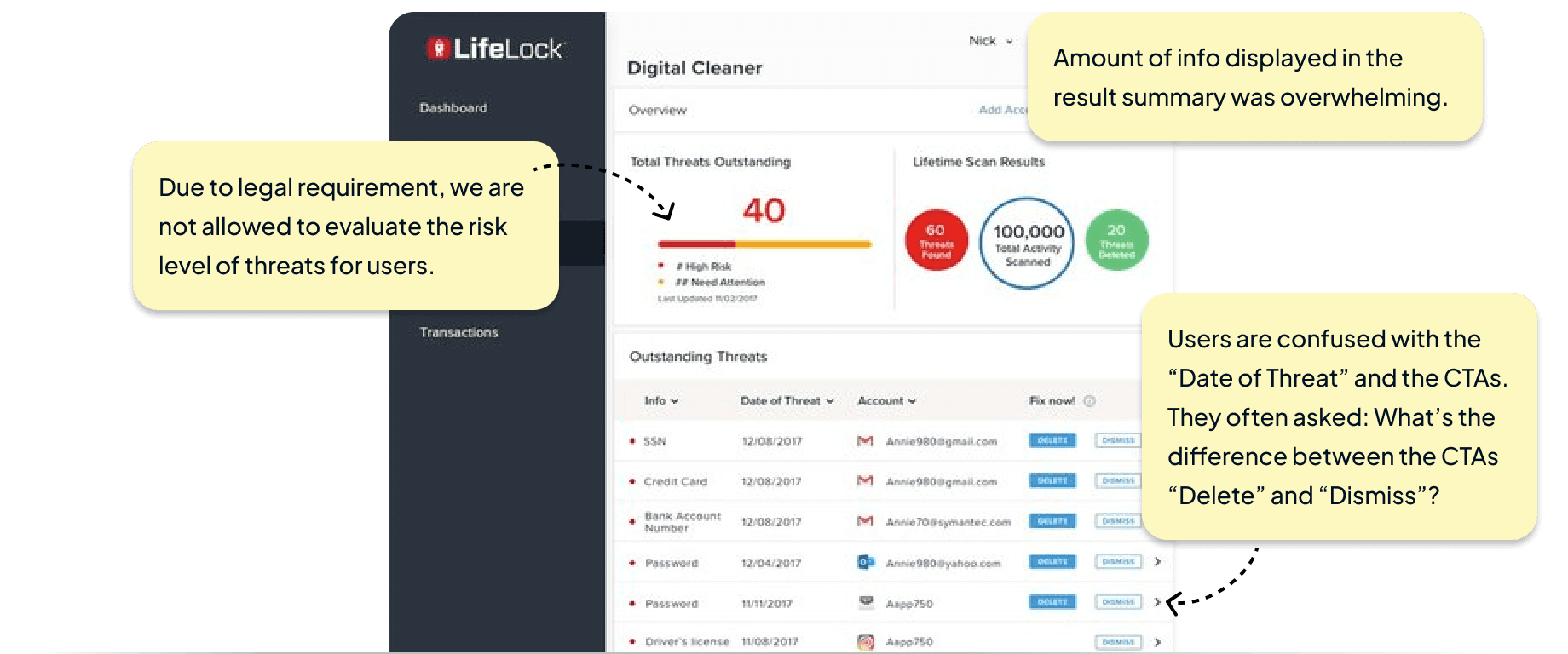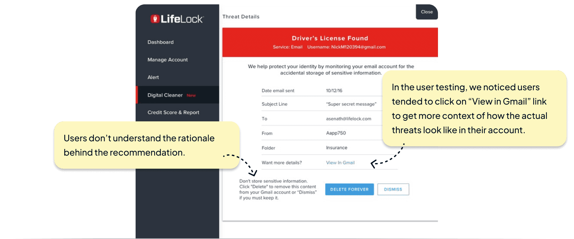 Initial user testing revealed critical insights that shaped our product strategy. Users expressed significant security concerns around data privacy while demonstrating strong demand for proactive monitoring capabilities to protect their sensitive accounts.